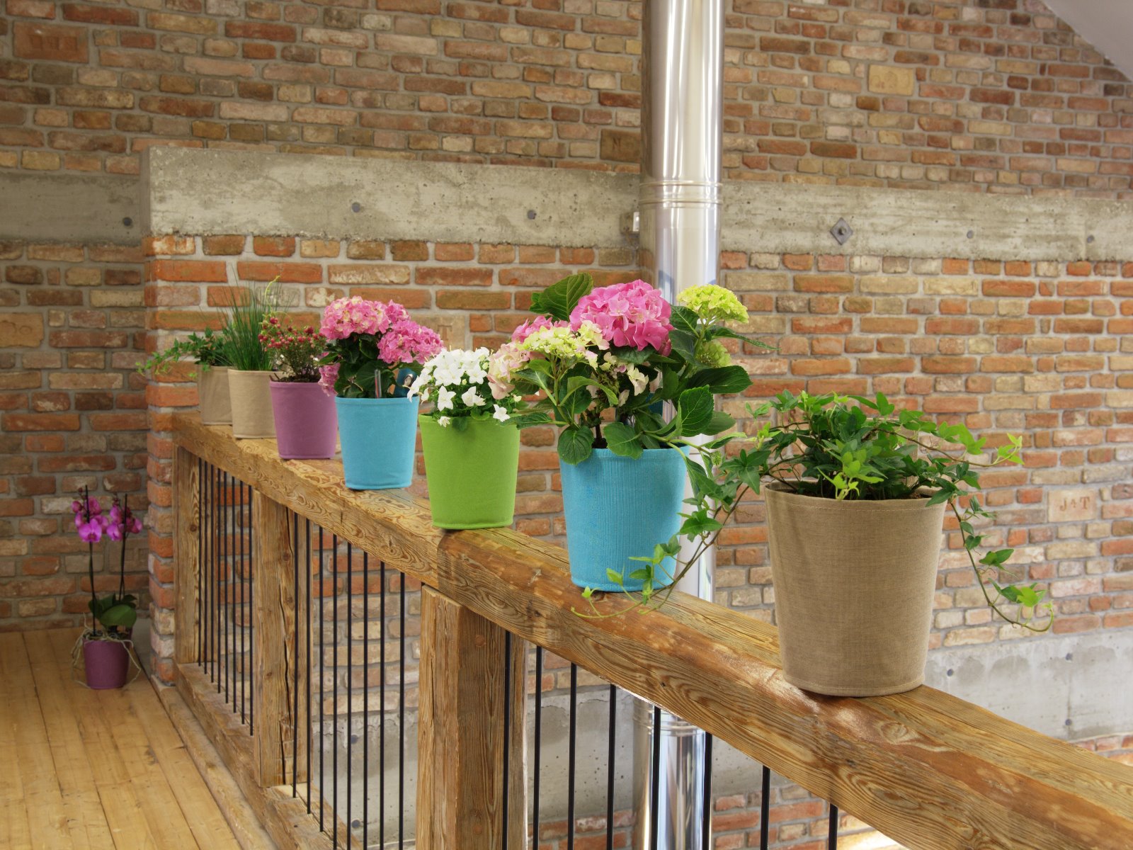 Elegante Hüllen in dezenten Farben für einen herausnehmbaren Blumentopf - einfach aber perfekt.