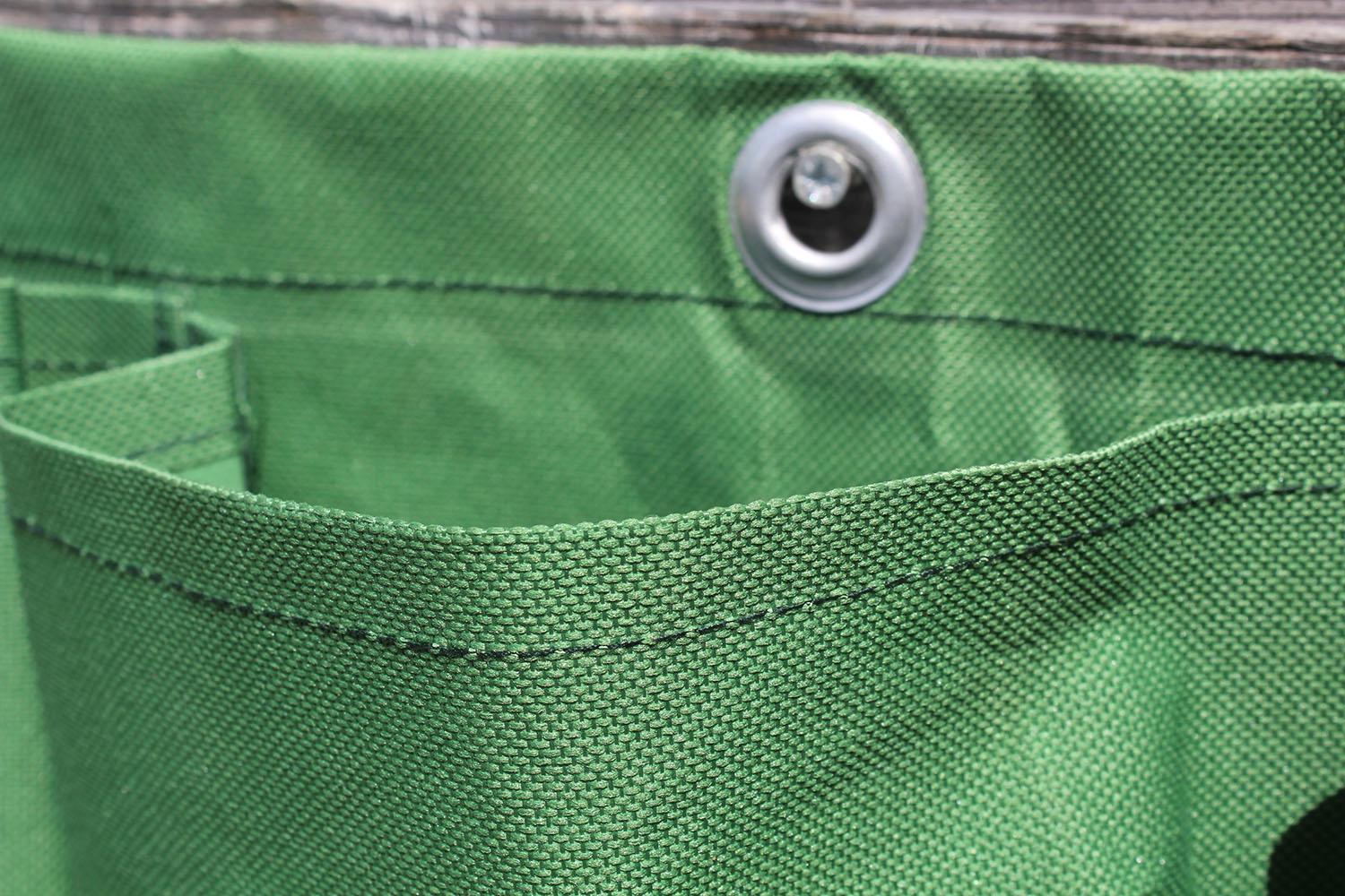 • 3, mit Ösen verstärkte Befestigungslöcher und pro Pflanztäschchen 1 verstärkte Drainageöffnung