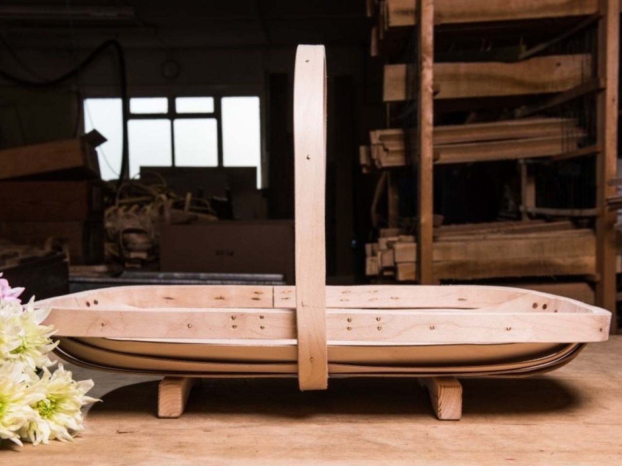 South Down Contemporary Flower Trug | leichter und langlebiger Blumenkorb aus Birkenholz | sorgfältig 'beinahe' in Handarbeit hergestellt.