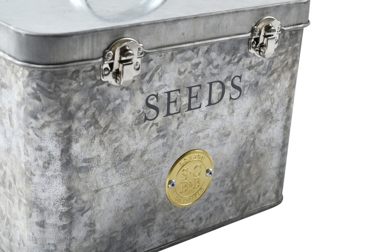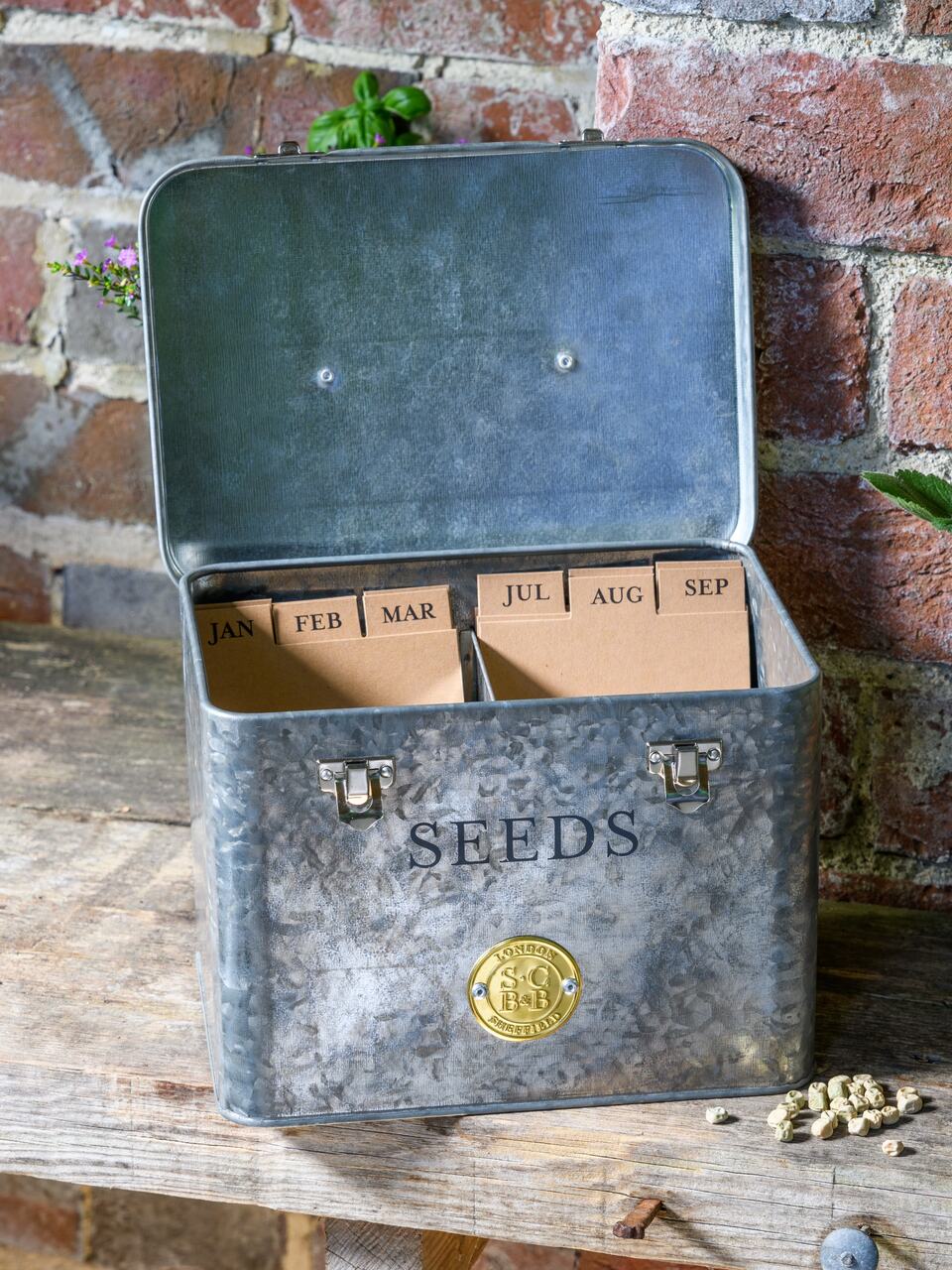 Samentüten-Organizer aus verzinktem Stahl | Dezent und zeitlos - dem Einrichtungstrend 'Modern Rustic' folgend - und perfekt zum Sammeln und Aufbewahren von Samenpäckchen.