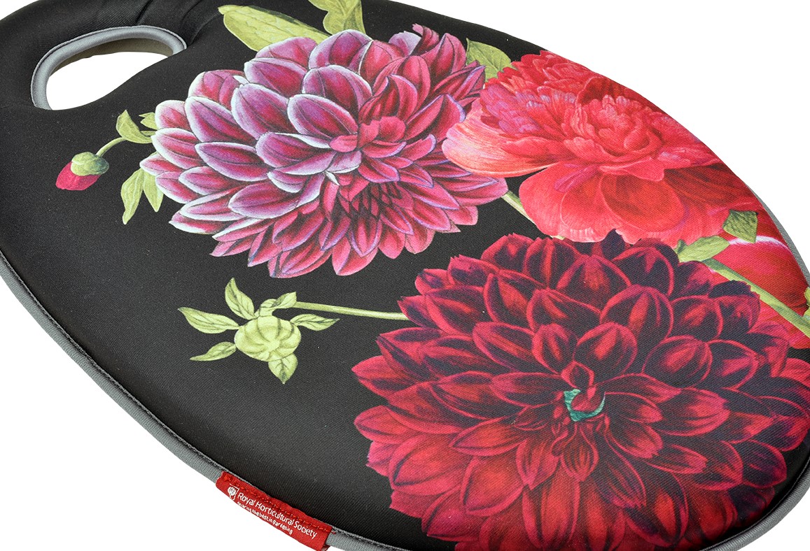Die Oberseite ist bunt, im 'Gifts for Gardeners' - Design British Bloom bezogen, für die Unterseite wurde ein unempfindliches Grau gewählt.