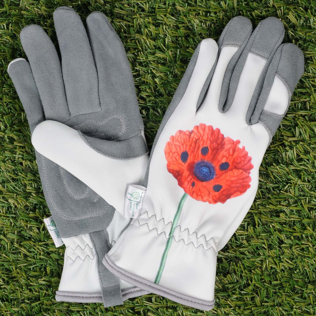 Die Chelsea-Handschuhe zeigen die handkolorierte Abbildung des Kupferstichs „The Great Scarlet Poppy“ von Wedell nach einem Original von John Lindley (1799-1865). Die Mohnblume ist weithin als traditionelles Symbol des Gedenkens und der Erinnerung bekannt.