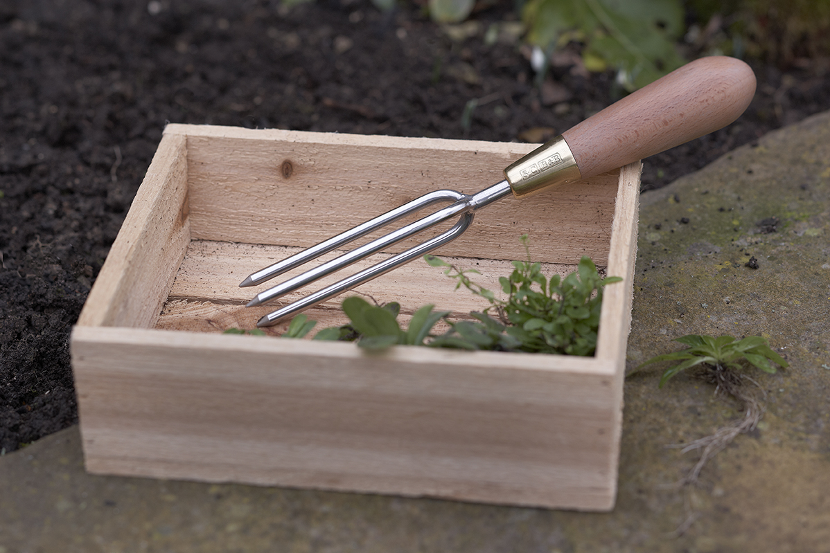 Das praktische 3-zinkige Jätewerkzeug von Sophie Conran ist extrem gut in der Bekämpfung von 'teuflischen' Beikräutern die nachwachsen, wenn Sie eine der Wurzeln hinterlassen.