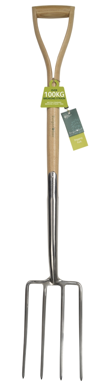 Der polierte Eschenholzstiel mit komfortablem Y-Griff liegt angenehm in der Hand. Dank doppelter Vernietung und langem, stabilem Edelstahlschaft hält die Gabel Belastungen bis zu 100 kg stand – das sind 82 % über dem britischen Standard.