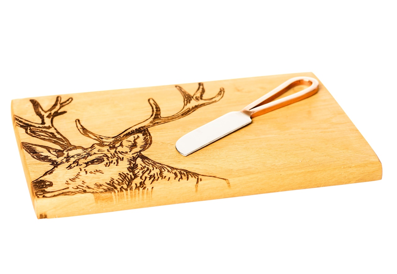 Käsebretter im ländlichen Country-Style | graviert mit beliebten Motiven aus Schottlands Feldern und Wäldern | Handillustriert und festgehalten auf Schottischer Eiche