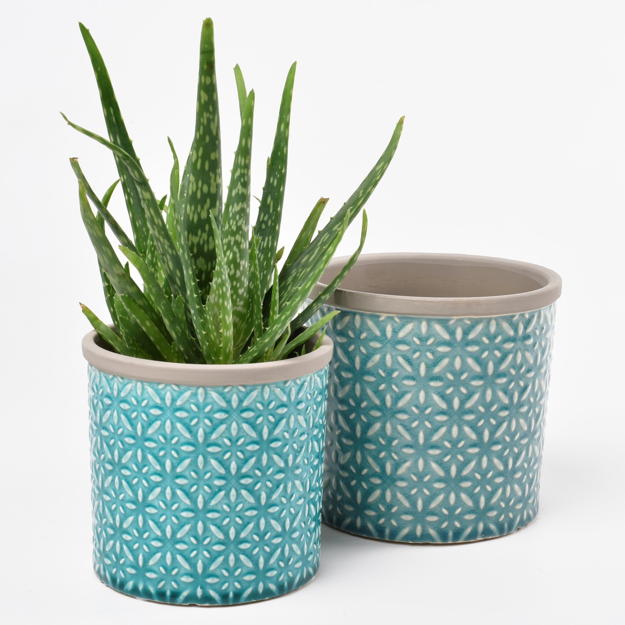 Und werden mit dem fein glänzenden Türkisblau von Tuscany - in Harmonie mit der entsprechenden Pflanze - zu einem echten Hingucker.