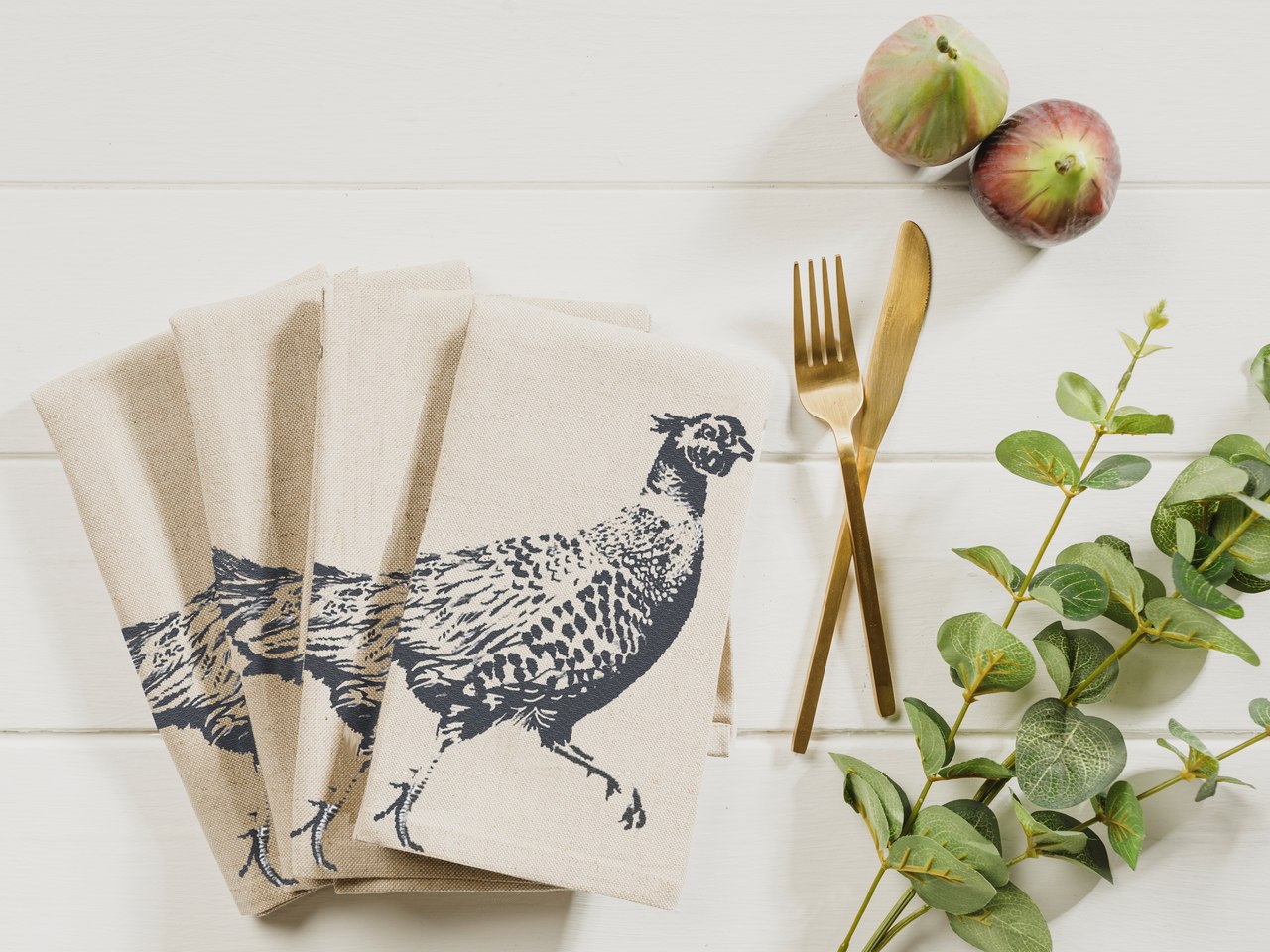 Country-Servietten aus Leinen/Baumwoll-Mischung mit dem unverwechselbaren Fasanen-Motiv - sowohl schön als auch nachhaltig.