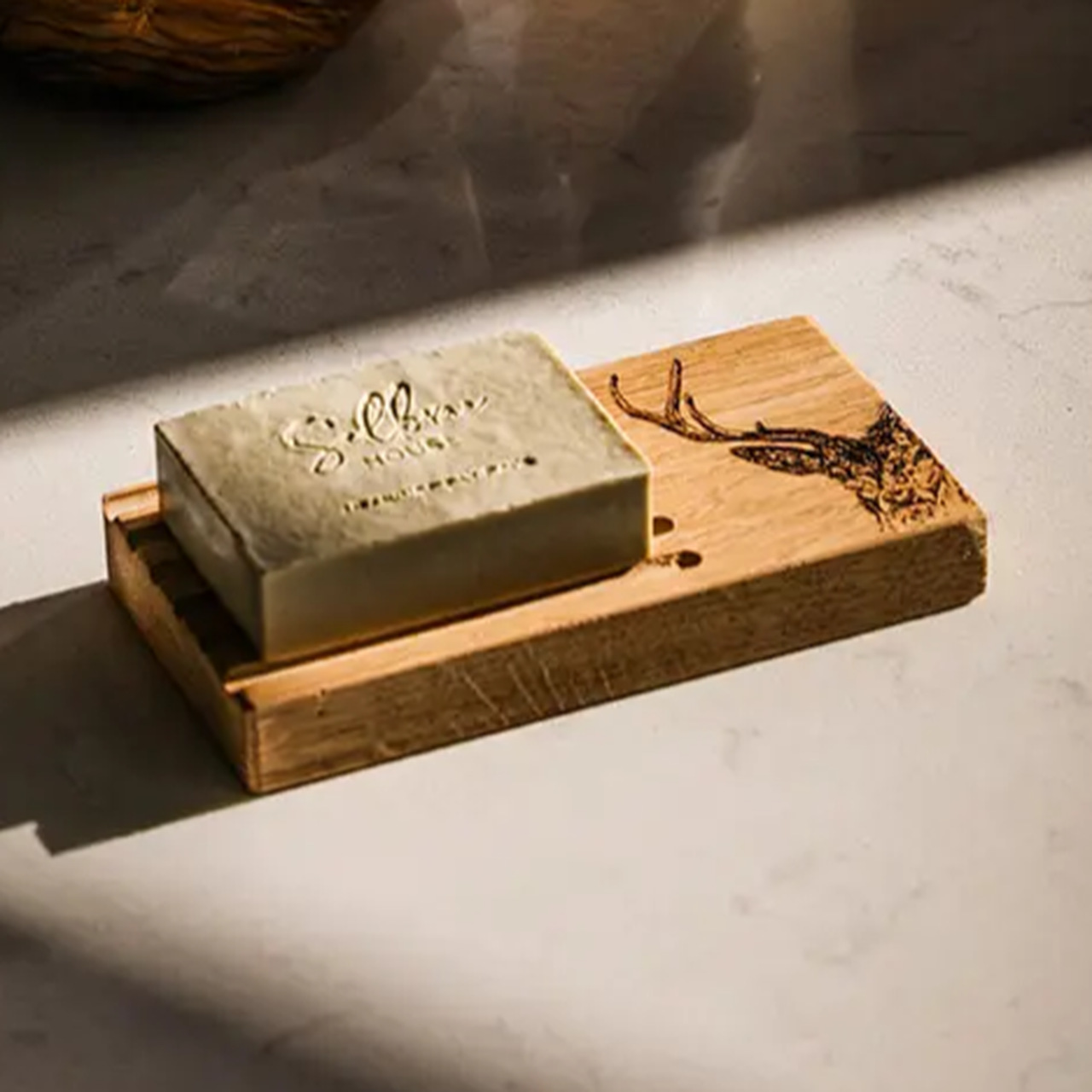 Seifenablage aus schottischer Eiche - Motiv Hirsch | Von Selbrae House | Schottland