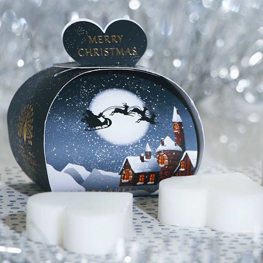 Pflegende Seifen - für ein glattes, weiches und frisch riechendes Hautgefühl | aus Pflanzenölen hergestellt und mit feuchtigkeitsspendender Sheabutter angereichert | für alle Hauttypen geeignet. Verschenken Sie exquisite Weihnachtsseifen für Waschbecken, Badewanne oder Dusche, die den Raum mit ihrem lang anhaltenden, würzigen Duft erfüllen werden.