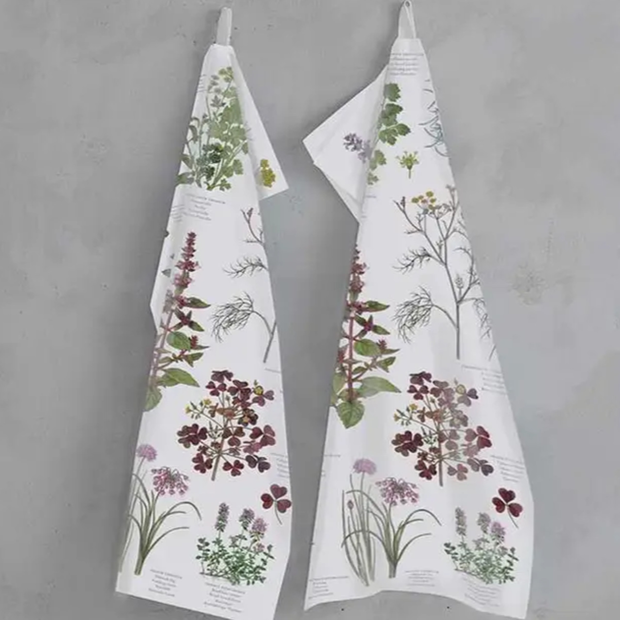 Geschirrtuch aus 100% Bio-Baumwolle mit detailgetreuen Illustrationen von 15 verschiedenen Kräutern | Die Motive wurden von der Künstlerin und Pflanzenmalerin Kirsten Tind gezeichnet.