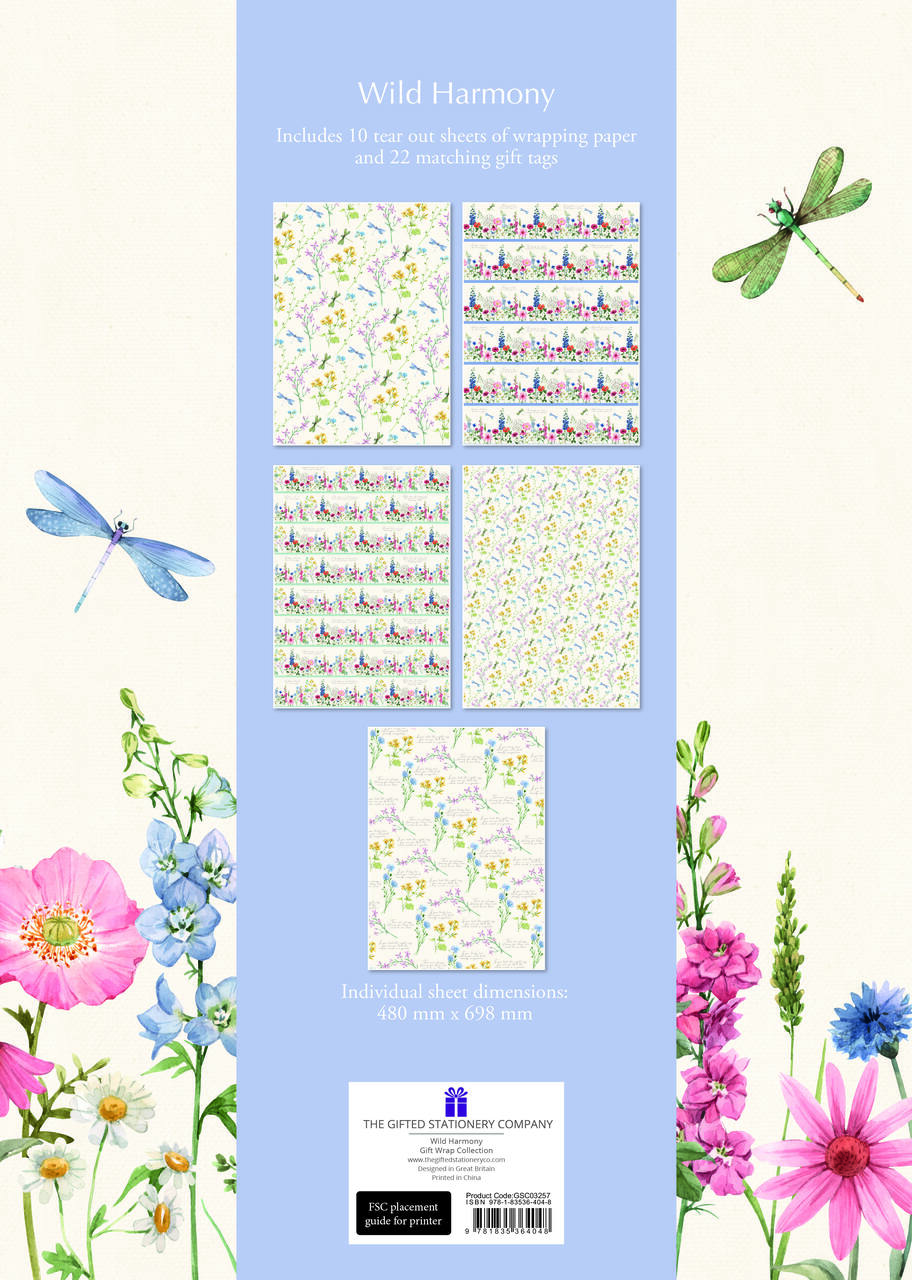 Leicht aufzubewahrendes Geschenkpapier-Buch - Design 'Wilde Harmonie' | Die zarte Schönheit und Vielfalt einer heiteren Sommerwiese auf hochwertigem Geschenkpapier