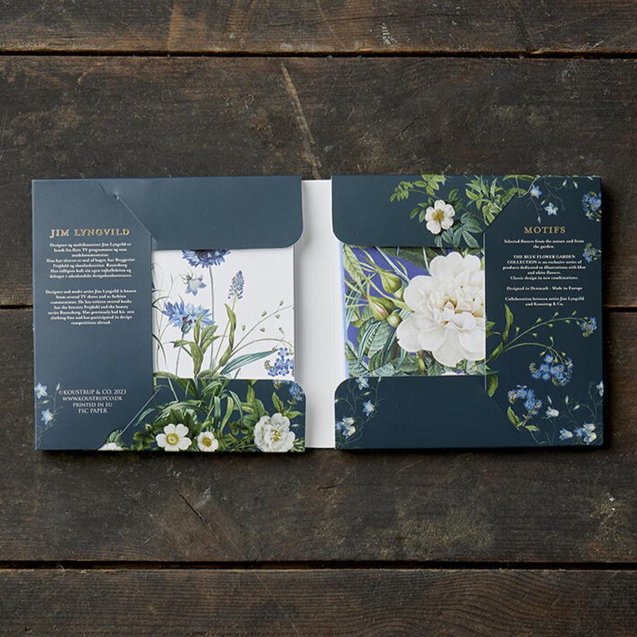 Kartenmappe mit acht Grußkarten und passenden Umschlägen | Design: Blauer Blumengarten | Zeitlos-klassische Blütenträume in Weiß und Blau - bezaubernd illustriert von Jim Lyngvild für Koustrup & Co.
