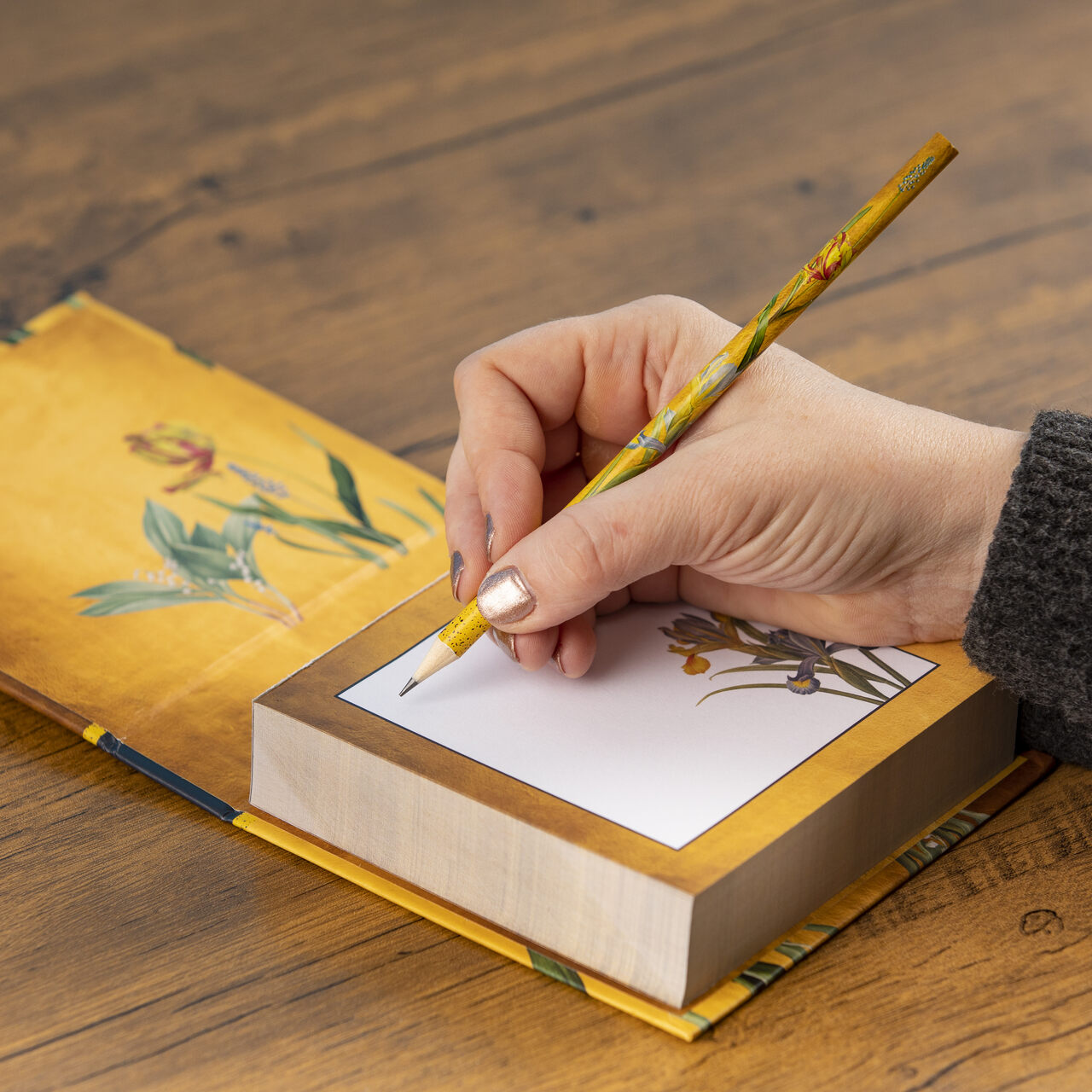 Mit festem Einband und 300 Blatt weißem Papier mit Akzentdesign (gewissermaßen eine Notiz mit persönlicher Note, die man gerne bekommt sofern man floral angehaucht ist.).