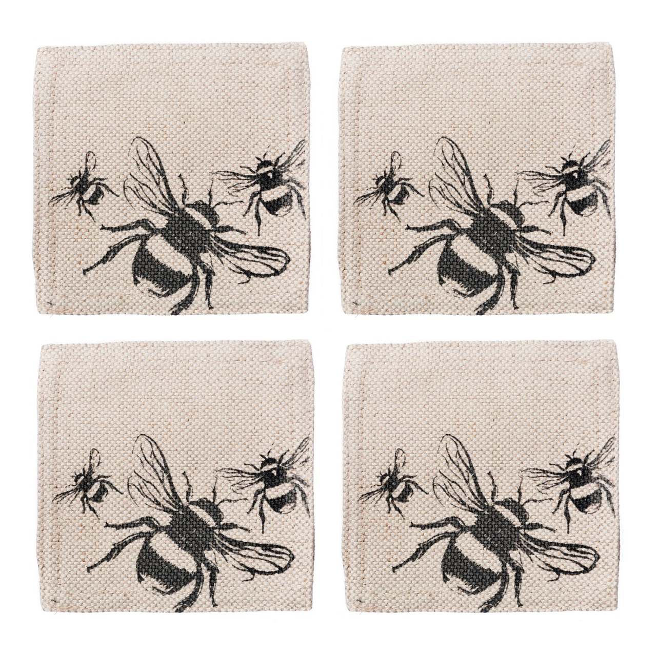 4er-Set Glas-Untersetzer aus Leinen/Baumwoll-Mischung mit dem Bienen-Trio von Selbrae House | mit Liebe designt und im Siebdruckverfahren auf hochwertiges 50/50 Leinen gedruckt - natürliches Finish für einen minimalistischen Look!