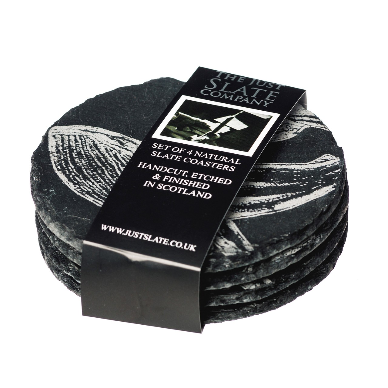 Ergänzen Sie Ihre maritime Tischdekoration mit den runden Wal-Untersetzern aus schottischem Schiefer oder verschenken Sie mit diesem schönen 4er-Set Ruhe und Entspannung an Freundinnen oder Freunde.