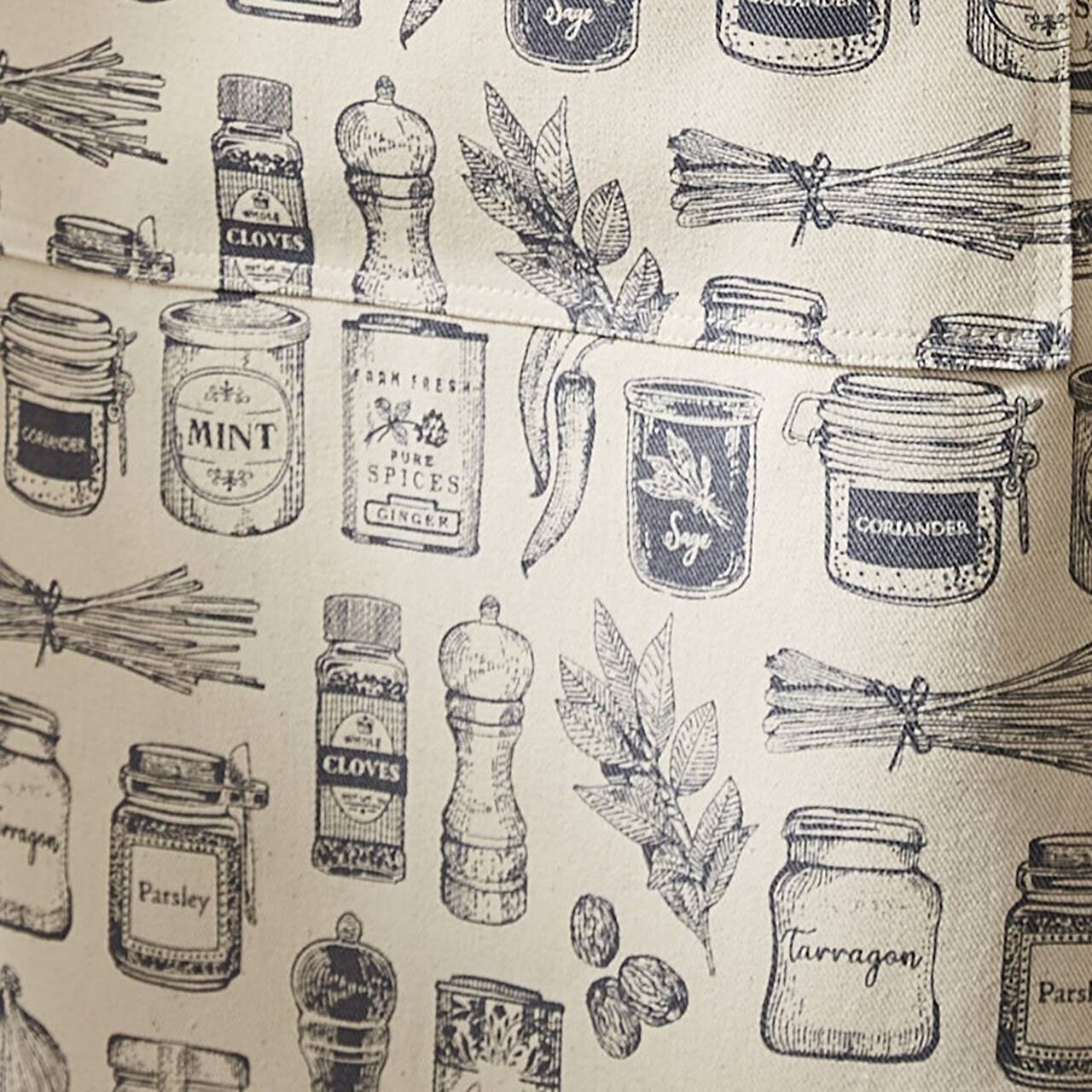 Das rustikal anmutende Ulster Weavers-Design dieser Schürze erinnert wunderbar nostalgisch an vergangene Zeiten. Alte Lebensmittelverpackungen und Rezeptbücher waren die Vorlage für die, mit feinen Linien ausgeführten, Vintage-Zeichnungen des Entwurfs. Der einfarbige Druck auf ungebleichtem Stoff ist das kleine Extra, das den rustikal-zeitlosen Charakter perfektioniert. Kräuter, bzw. Gewürze wie Schnittlauch, Nelke oder Ingwer sind nur ein paar der Darsteller die dazu einladen, Ihrer Küche und ihrem Look einen nostalgischen Touch zu verleihen.