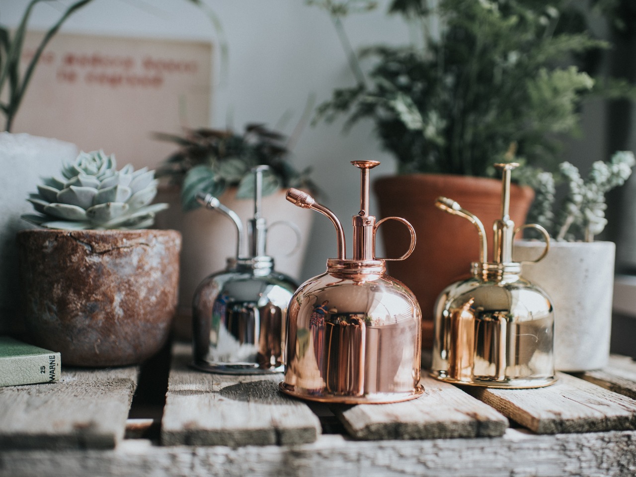 Die stilvollen Pflanzensprüher sind eine charmante Ergänzung zu einer farblich passenden Zimmergießkanne.