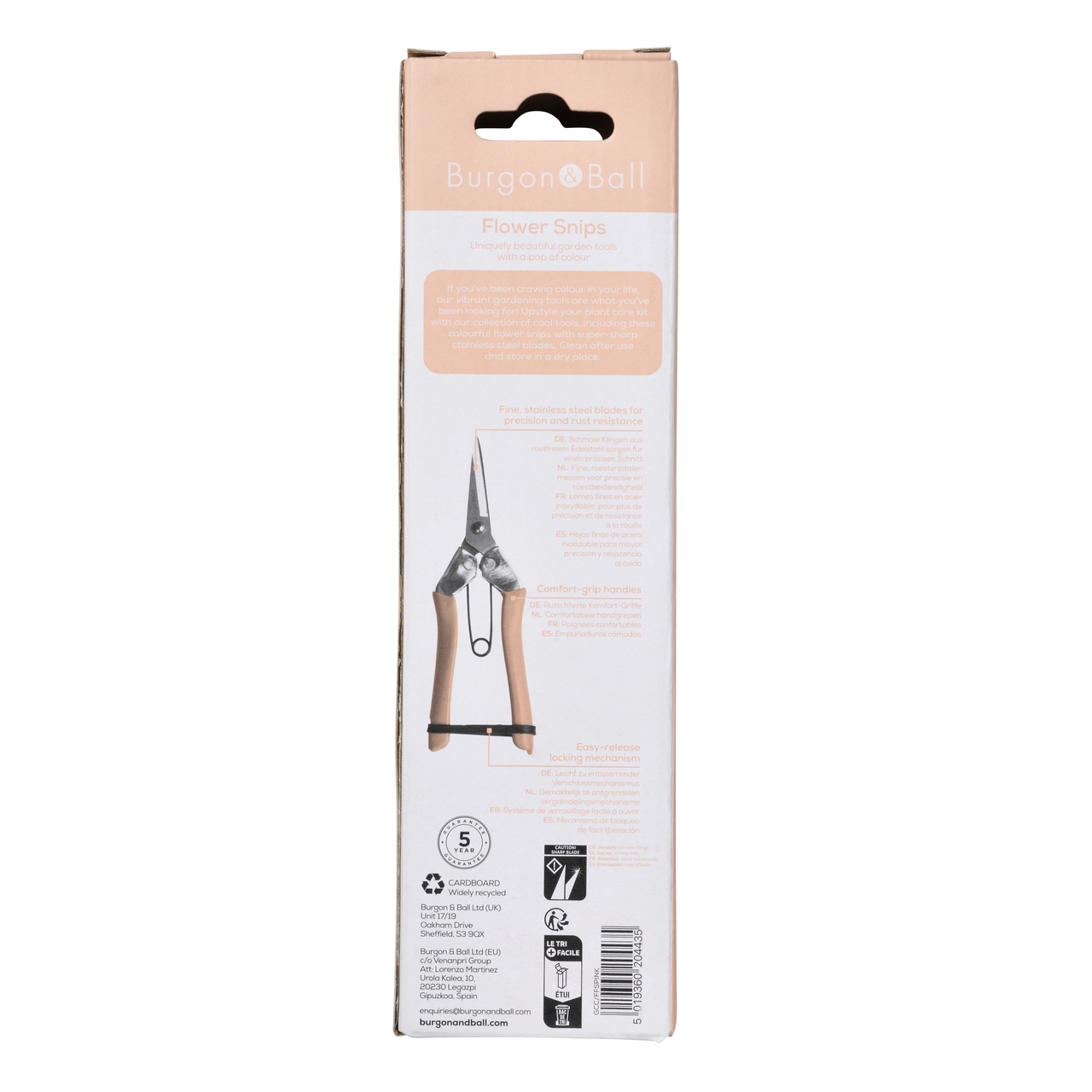 Hochwertig, leicht und handlich - mit feinen, spitzen Klingen - schneidet die Schere mühelos durch weiche Stiele und lebendes 'Grün'. Ob für das Entfernen von Vertrocknetem oder Verblühtem, die Ernte von Obst und Gemüse oder für die Pflege von Zimmerpflanzen - diese Schere ist vielseitig einsetzbar und kann leicht zur Lieblingsschere werden. Rutschfeste Komfortgriffe in zartem Rosa, eine sanft arbeitende Schenkelfeder und die einfach zu bedienende Verriegelung machen die Handhabung besonders angenehm. Die hübsche bonbonfarbene Papp-Box ist vollständig recycelbar und macht die Schere zu einem charmanten Geschenk für Gartenfreundinnen - oder zu einer fantastischen Belohnung für Sie selbst. Eine Blumen- & Ernteschere ist die ideale Wahl für alle, die Wert auf präzises und komfortables Arbeiten im Garten und zu Hause legen.