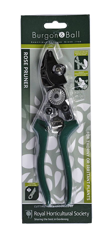 Die Rosenschere ähnelt DER KLEINEN Schere. Wie diese ist sie eine Bypass-Schere, hat aber Klemmstücke an Klinge und Gegenklinge. Diese Haltestücke halten das abgeschnittene Schnittgut an der Schere fest, solange die Schere zugedrückt bleibt. Wird die Schere geöffnet, fällt das abgeschnittene Teil direkt in den Korb und muss nicht aus der dornigen Rose herausgefischt oder aufgehoben werden.